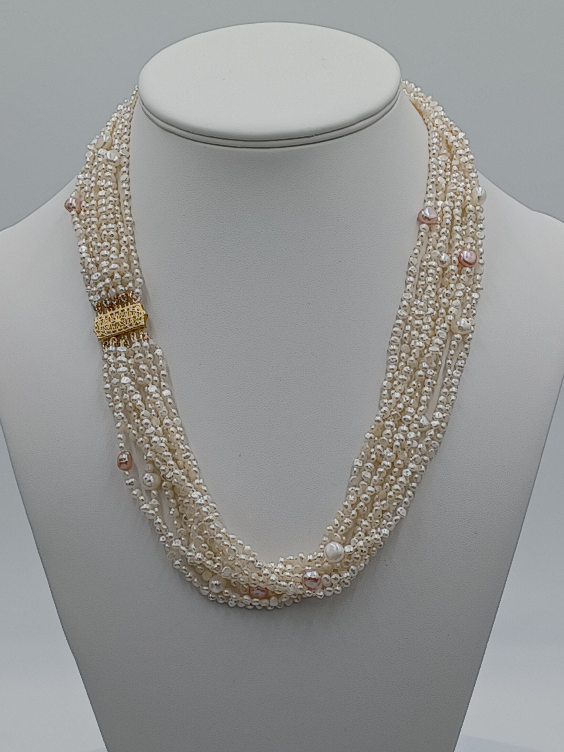 VERY SPECIAL!!! 10 delicate strands of hi-luster baroque seed and rock cultured pearls.