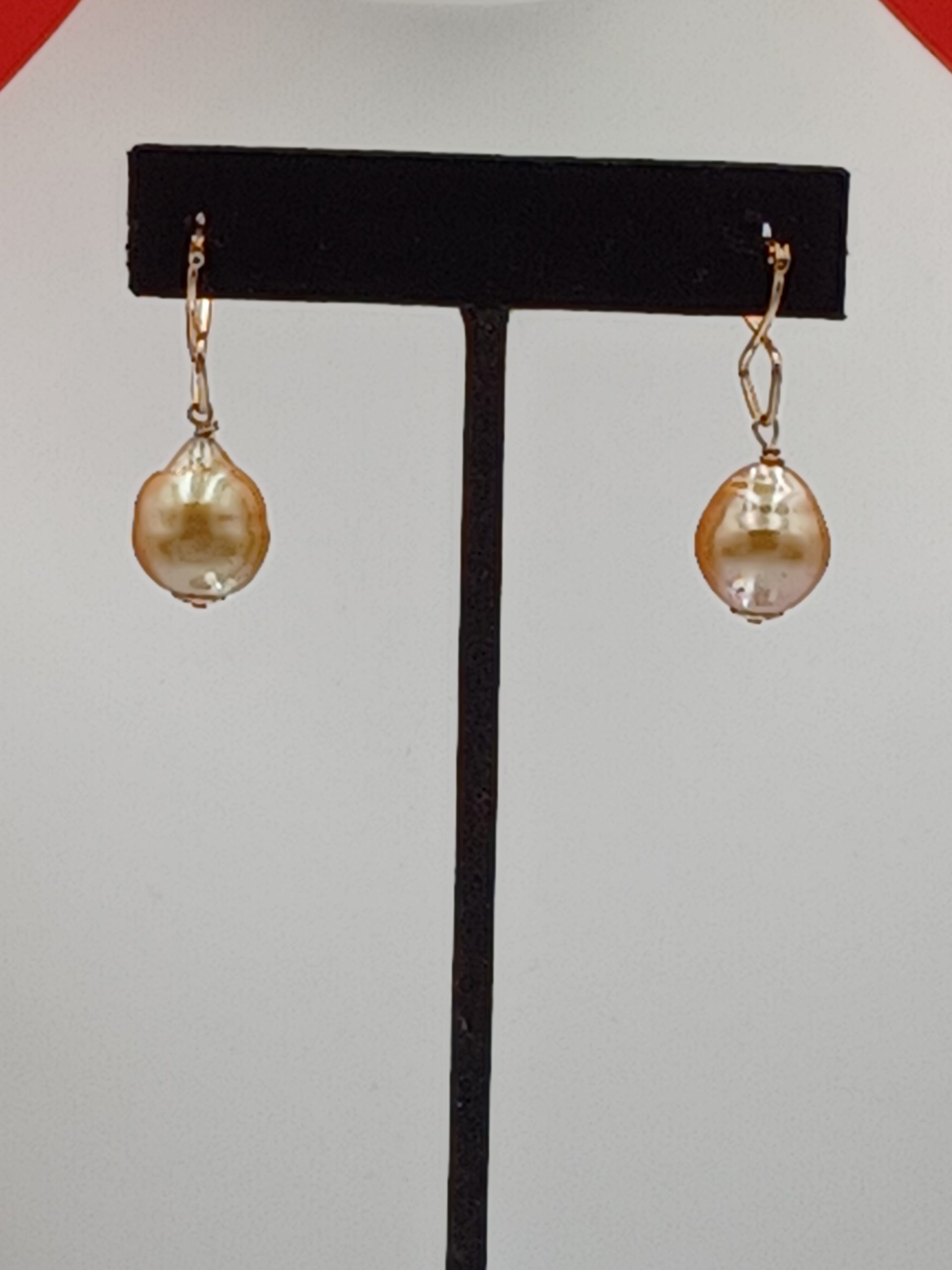 Beautiful large natural 12.0mm hi-luster golden Tahitian pearls hanging from a unique