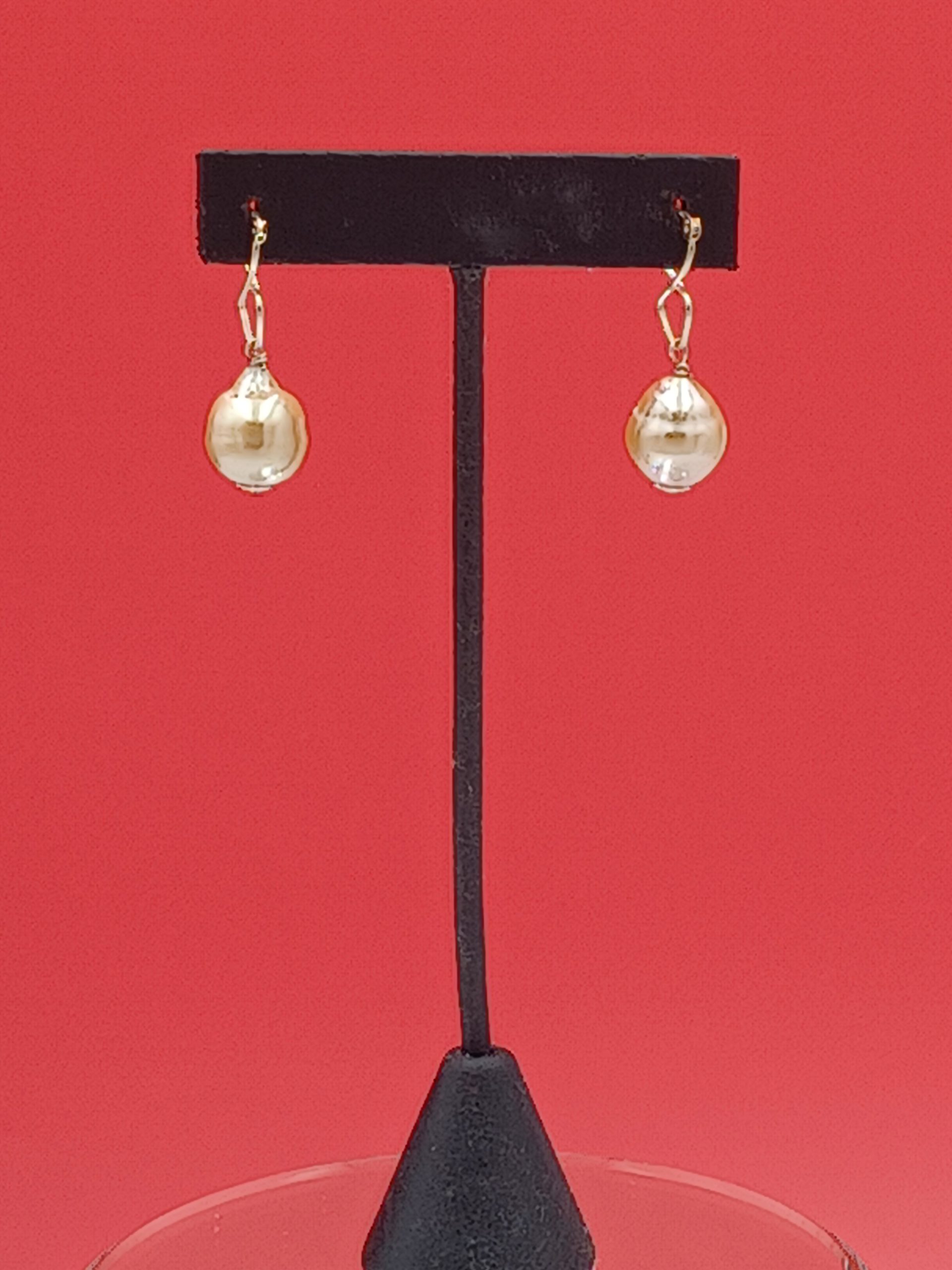 14kt gold abstract hooks (findings), and 14kt gold end caps. Approx. 1.5″ drop length.