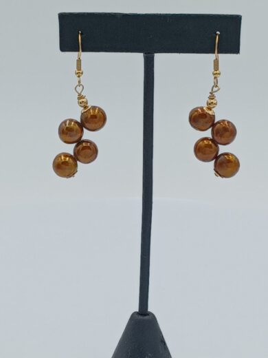with red Swarovski crystal accents. 14kt gold Sheppard hooks. 2.25” drop length.
