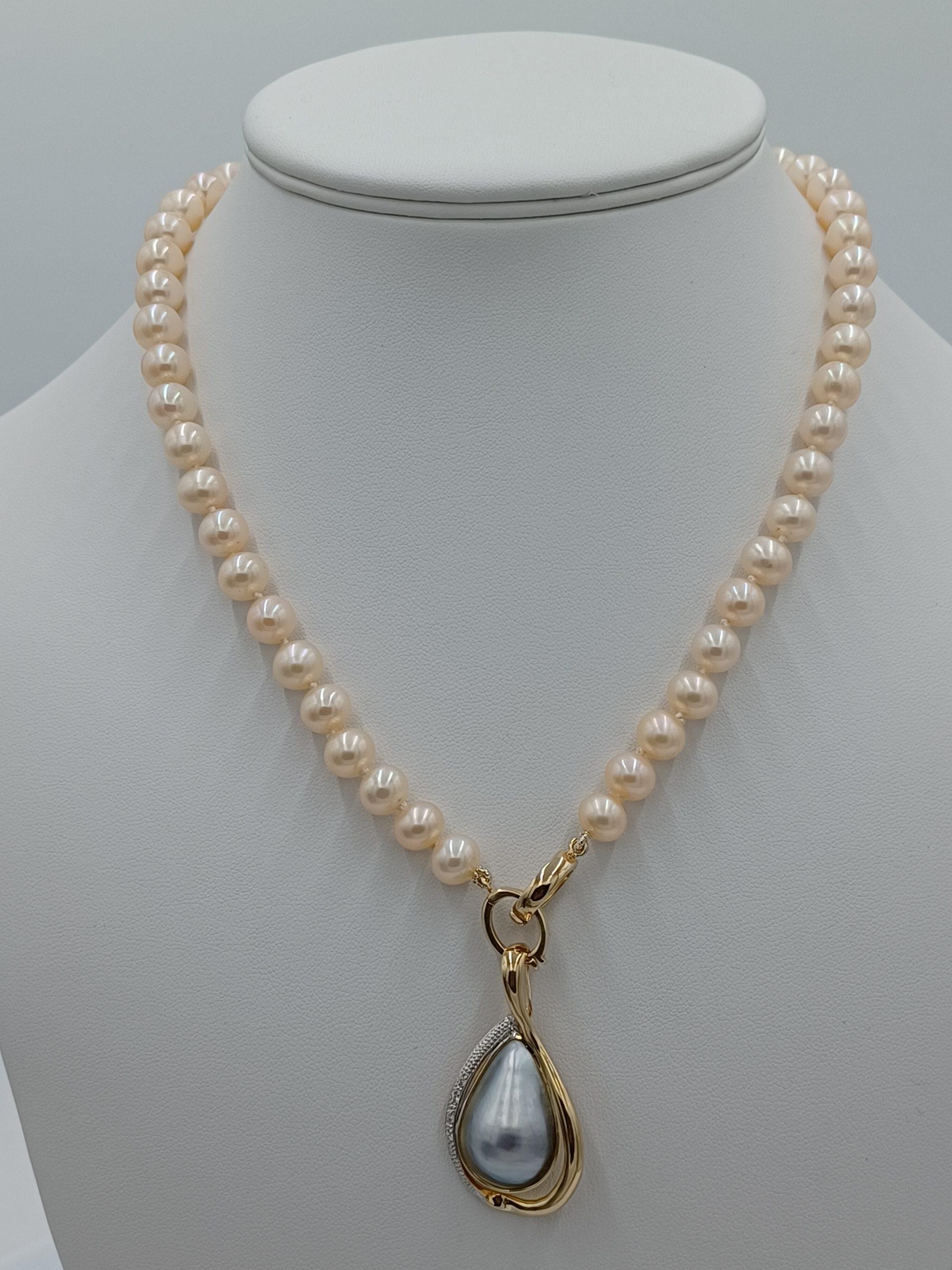 14kt gold (white and yellow) with diamonds, Ma-Be cultured pendant available. Sold separately.