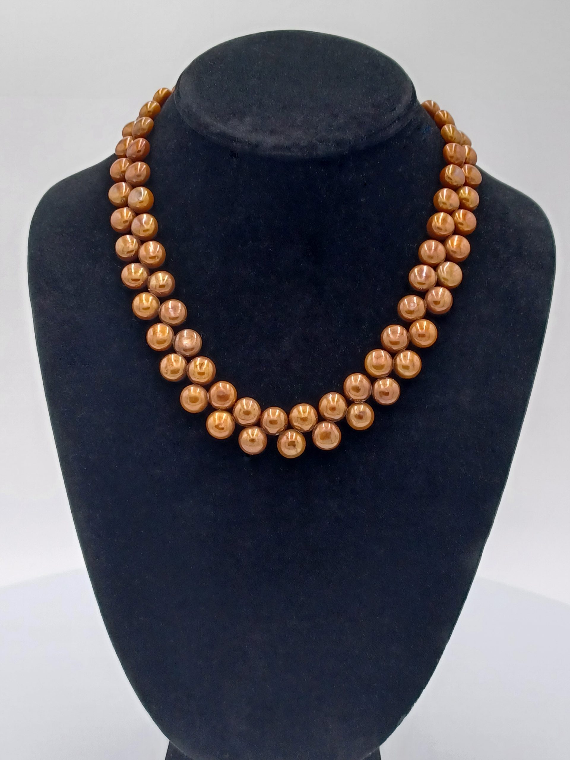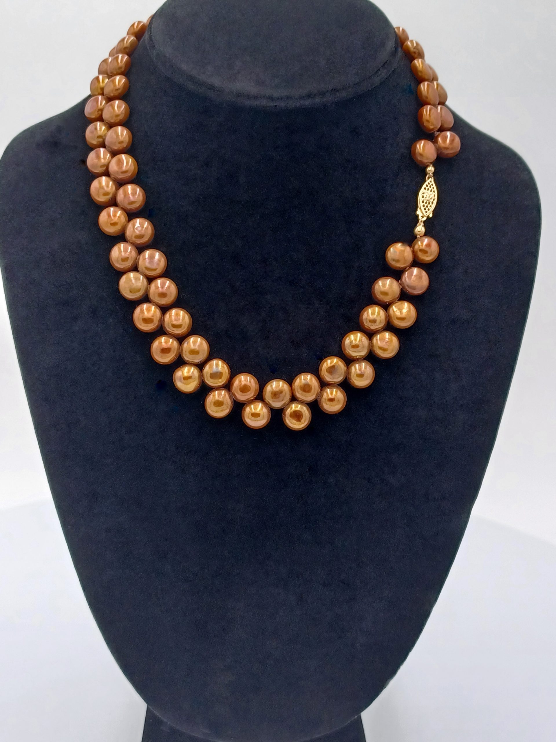 BEAUTIFUL!!! 9.0mm Bronze baroque button cultured pearls with 14kt gold accents.