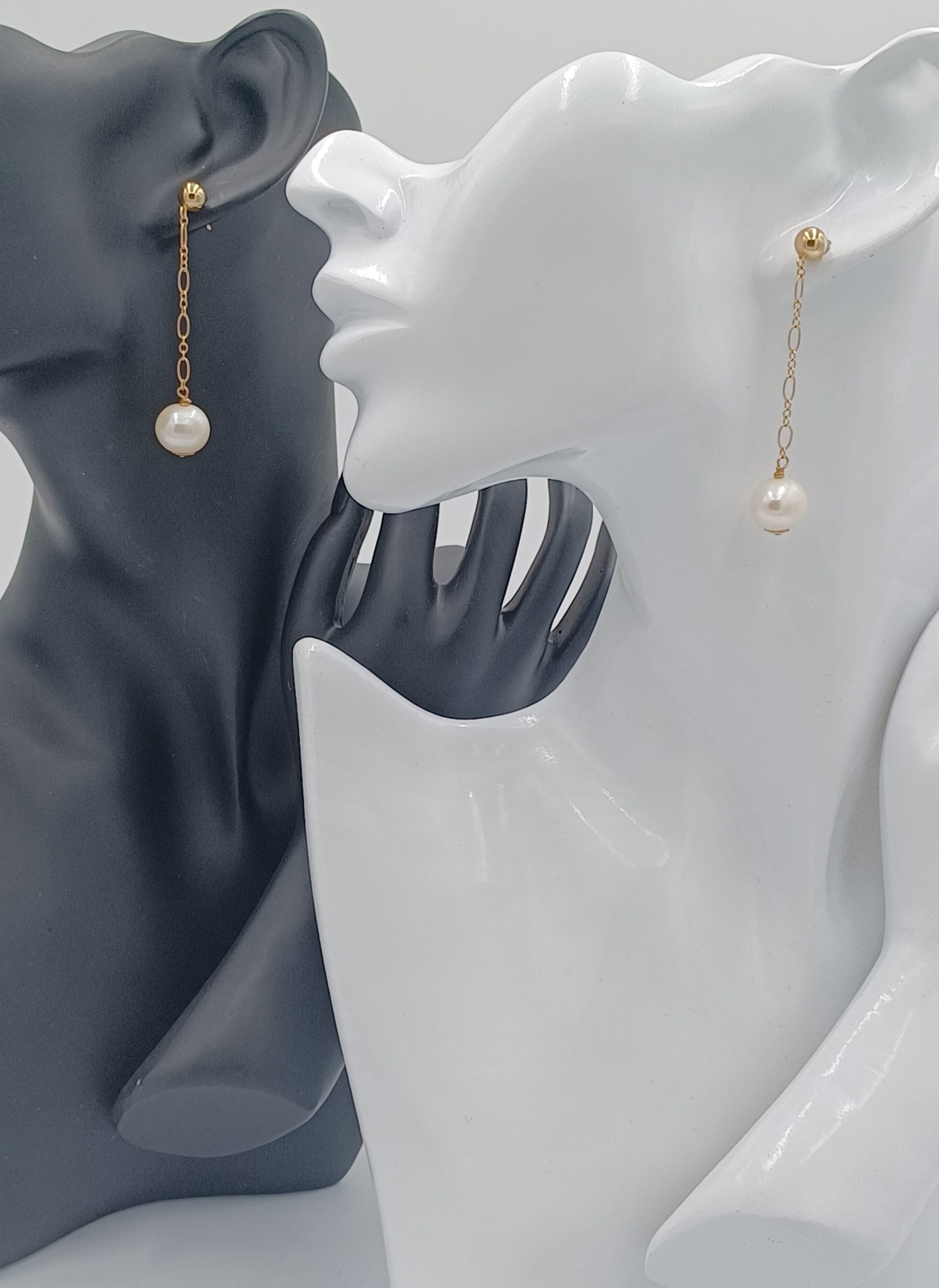 SIMPLY ELEGANT! Beautiful drop earring. 11.0mm round baroque cultured pearl hanging from a 6.0mm 14kt ball post using 14kt gold chain. Also has 14kt end cap. 2.25” drop in length. Dramatic Drop!