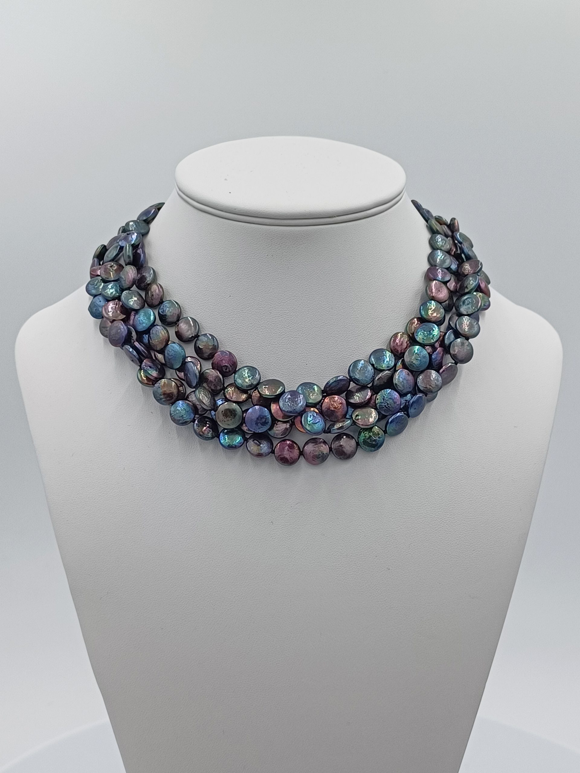 Sidney 5 Strand Peacock Coin Pearl Necklace